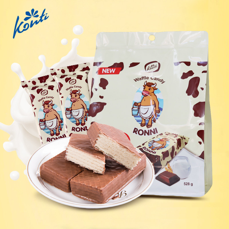 俄罗斯进口小牛巧克力奶油夹心威化饼干KOPOBKA休闲零食250g×2袋